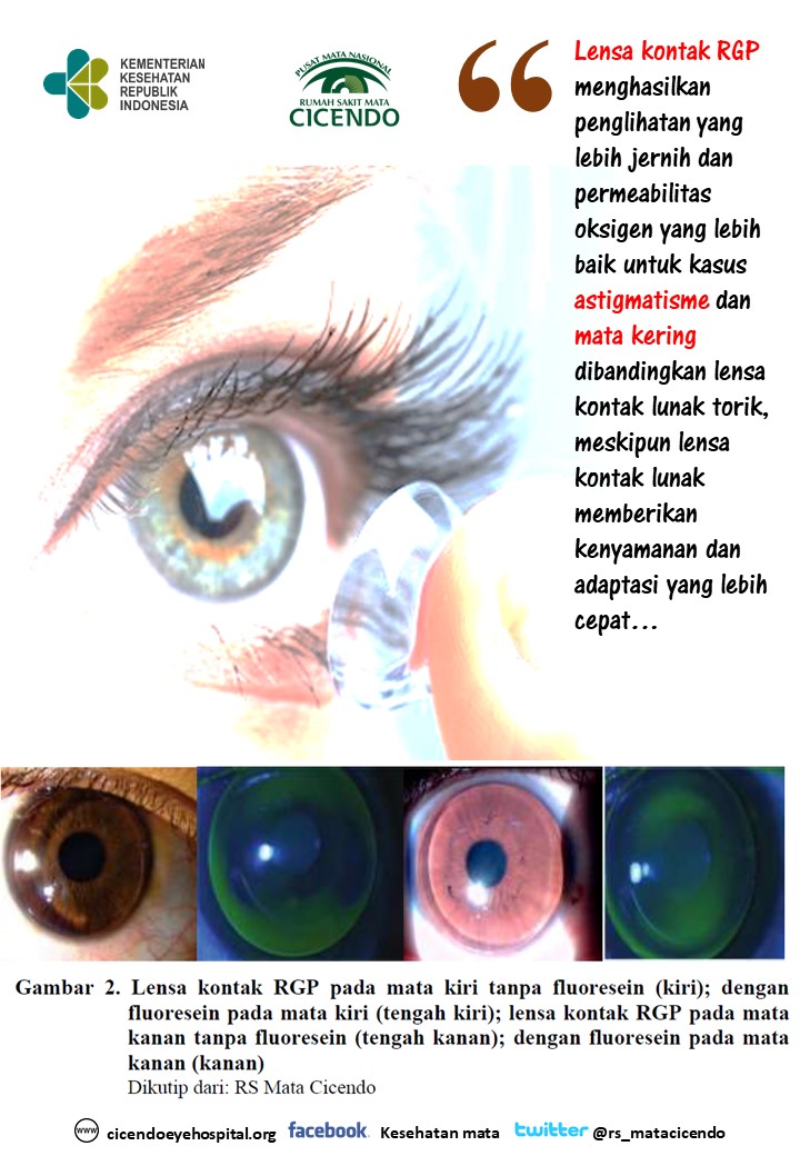 Lensa kontak sudah sangat umum digunakan oleh banyak orang, baik untuk indikasi optik,therapeutik, prostetik maupun kosmetik. Lensa kontak berdasarkan jenisnya dibagi menjadi tipe keras, lunak, rigid gas permeable (RGP), dan hybrid. Penggunaan lensa kontak tipe keras sudah ditinggalkan karena bahan polymethylmethacrylate (PMMA) yang keras dan tidak permeabel terhadap oksigen. Lensa kontak lunak lebih sering dipilih karena proses adaptasi yang cepat dan lebih nyaman untuk pemakainya dibandingkan lensa RGP. Namun, lensa RGP memiliki keunggulan yaitu menghasilkan penglihatan yang lebih jernih dan stabil terutama dalam mengkoreksi astigmatisme.