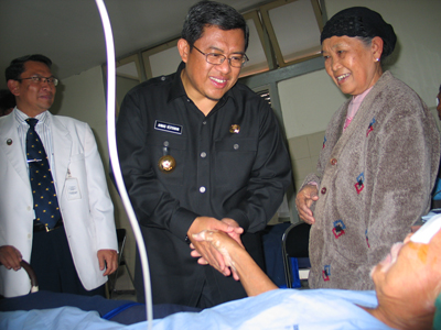 Bandung - Dalam kunjungannya ke RS Mata Cicendo, Selasa (25/8/2009) Gubernur Jabar Ahmad Heryawan bersama istri Netty Heryawan melakukan pemeriksaaan mata di Lasik Center RS Cicendo.