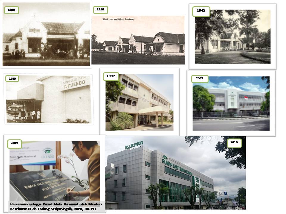 Rumah Sakit Mata Cicendo yang beralamat di Jalan Cicendo No. 4 Bandung, Jawa Barat, diresmikan pada tanggal 3 Januari 1909 dengan nama Koningen Wilhemina Gathuis voor Ooglijders dengan Direktur pertama Dr. C.H.A. Westhoff. Pelayanan yang diberikan saat itu adalah pelayanan rawat jalan, rawat inap dan kegiatan operasi. Tahun 1930, mulai melakukan kegiatan pelayanan luar gedung (outreach) ke daerah sekitar Bandung, seperti Sumedang, Tanjungsari, Congeang, Darmaraja, Situraja, dan Legok.